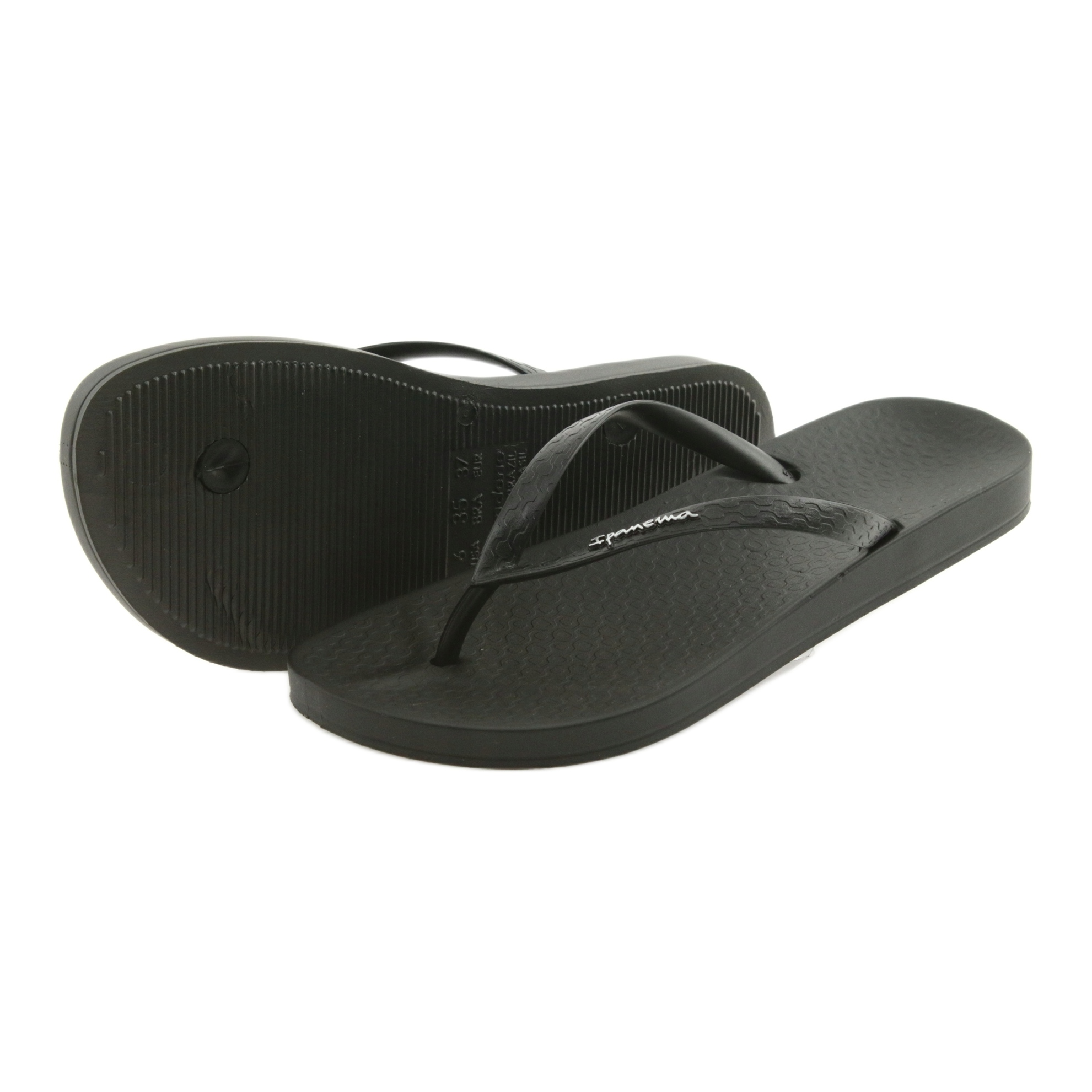 Ipanema Jepans 82591 20766 - Flips de mulheres negras, combinando conforto e durabilidade. Feito de borracha de alta qualidade (material externo e inserção), com uma sola anatômica feita de espuma de borracha com qualidade elevada, elas proporcionam conforto mesmo durante o desgaste por horas. O design leve e flexível se adapta bem ao pé e, ao mesmo tempo, é resistente à abrasão - perfeito para a piscina, a praia e o uso diário em dias quentes.