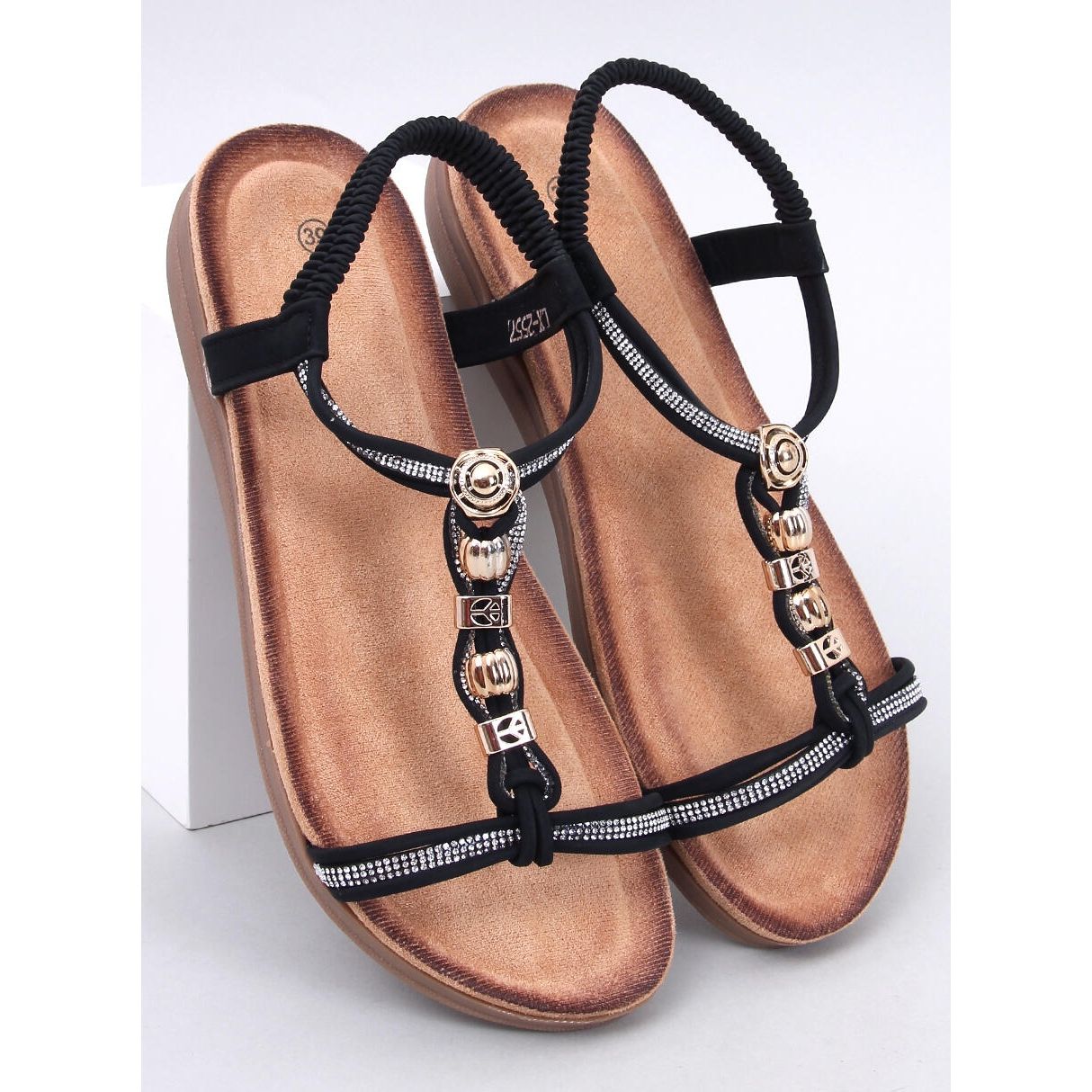 Conheça as sandálias decoradas com zircões pretos de Isabey - a escolha perfeita para mulheres que desejam combinar elegância com conforto todos os dias. Essas sandálias pretas em uma sola grossa são distinguidas por um estilo único, graças a detalhes dourados e zircões brilhantes que lhes dão um brilho único. Esta é uma excelente opção para aqueles que não querem se preocupar com acessórios, porque essas sandálias são uma decoração expressiva em si!