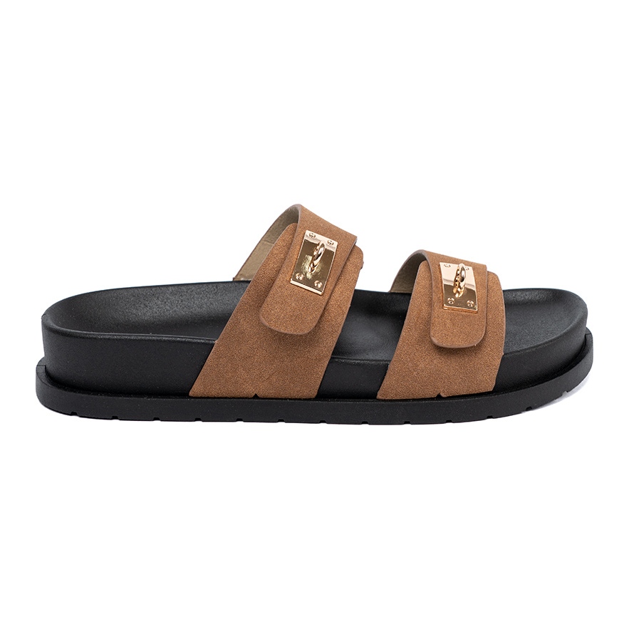 Feitas de imitação de pele de alta qualidade, esses chinelos fornecem não apenas uma aparência elegante, mas também conforto de desgaste. O corte inserido e uma facilidade de adquirir a facilidade de colocar, e a plataforma de 4 cm de altura faz com que os pés bem suportados e caminhar neles se tornem extremamente confortáveis.