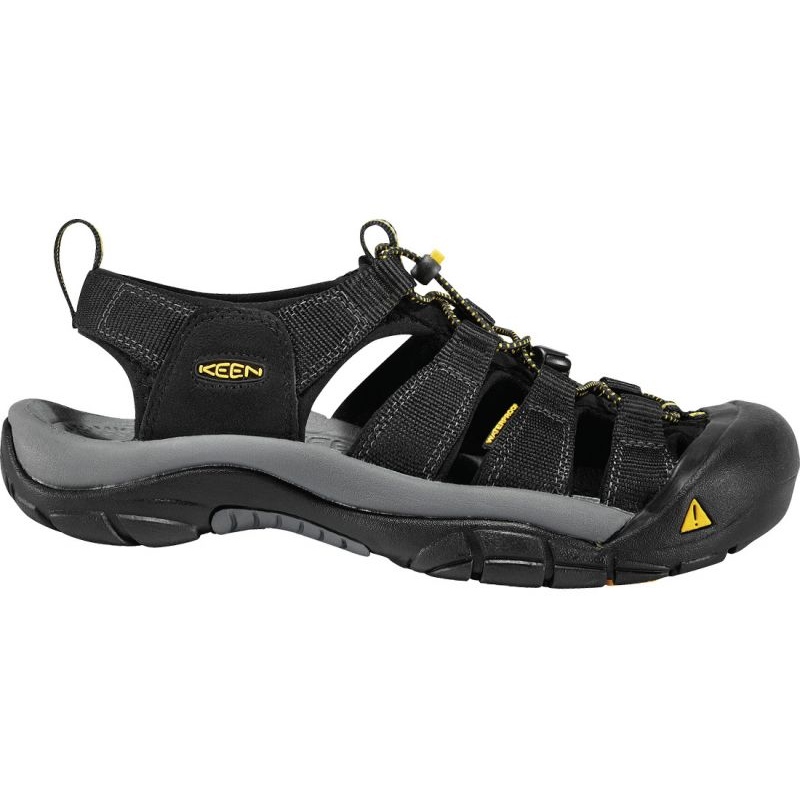 Keen Newport H2 M 1001907 - Sandálias ao ar livre de homens negros, combinando força com conforto. Projetado para usuários ativos - para caminhadas, viagens à água ou vestindo diariamente em dias quentes. O modelo é distinguido por sólidos desempenho e soluções práticas que garantem alguma retenção do pé e protegendo os dedos.