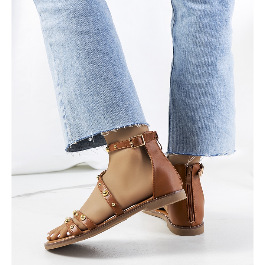 As sandálias marrons com tachas Krolt são o complemento perfeito para o estilo de verão e certamente vão chamar a atenção. Confeccionados em couro ecológico de alta qualidade, proporcionam não só conforto de uso, mas também durabilidade. Os tachas brilhantes adicionam personalidade a eles, tornando-os um toque moderno para qualquer roupa.