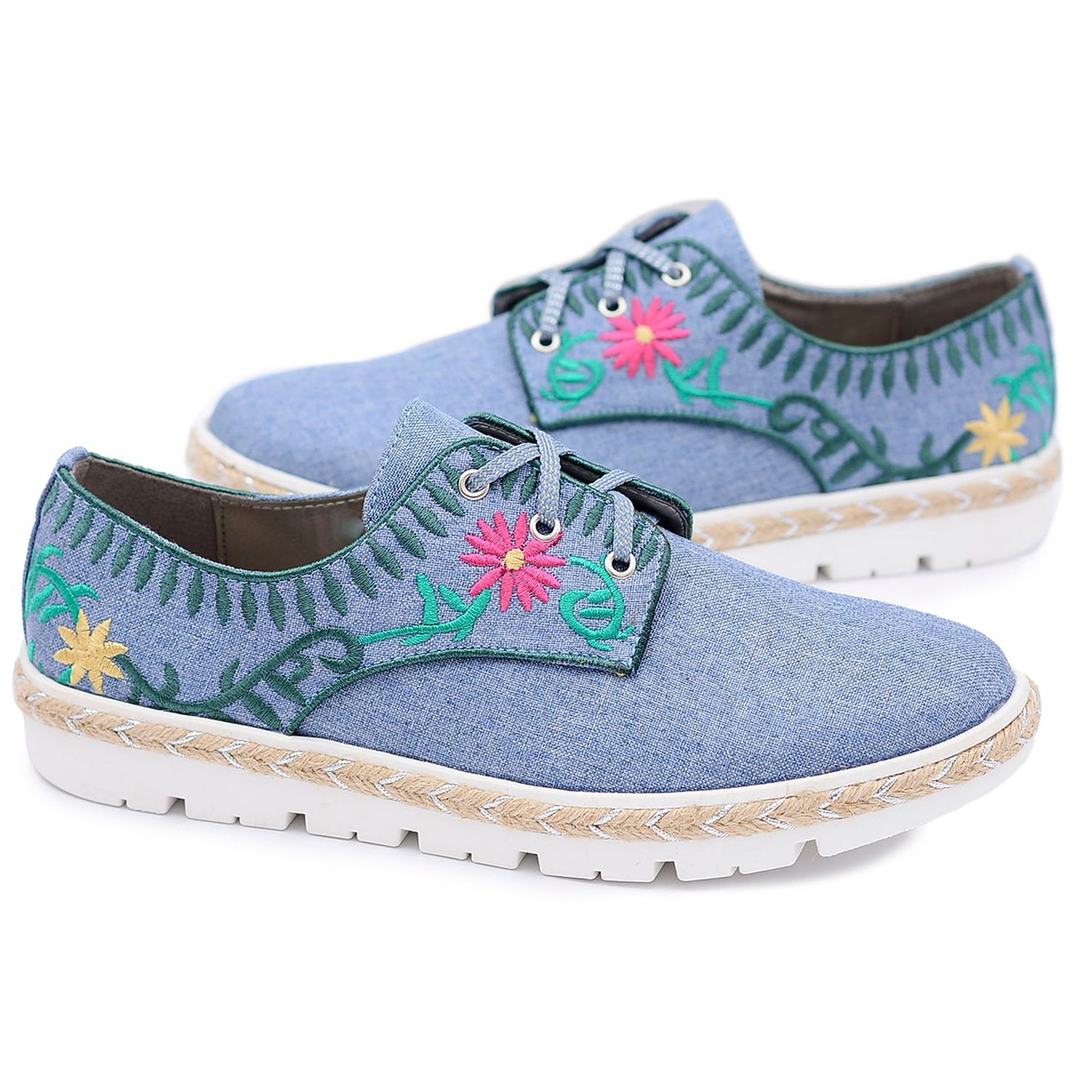 Detalhes: Kylie Crazy | Tênis esportivos elegantes femininos com flores Jeans Prim azul marinho