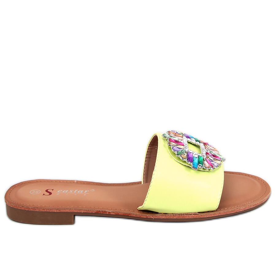 Um cinto largo, decorado com pedras coloridas e brilhantes, chama a atenção e dá um toque de brilho a qualquer look. Crie uma impressão inesquecível durante os passeios de verão ou relaxando à beira da água. Feitos de couro ecológico de alta qualidade, os chinelos não só têm uma ótima aparência, mas também são ecologicamente corretos.