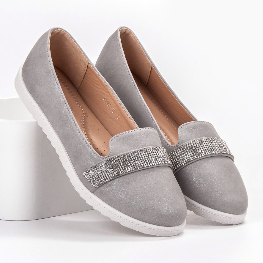 Os Lords cinza Queentina são a escolha ideal para mulheres que valorizam conforto e estilo. Estes sapatos slip-on, confeccionados em couro ecológico de alta qualidade com atraente acabamento glitter, combinam perfeitamente com o caráter casual do estilo do dia a dia.