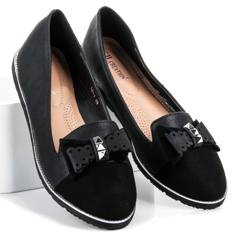 Prepare-se para a próxima primavera com Ch. Lords extremamente elegantes. Criação com laço preto! Estes sapatos de camurça são obrigatórios para toda mulher fashion que valoriza o conforto e a elegância nas roupas do dia a dia. Graças à parte superior slip-on, calçá-los é rápido e cómodo, o que os torna perfeitos para o dia a dia.