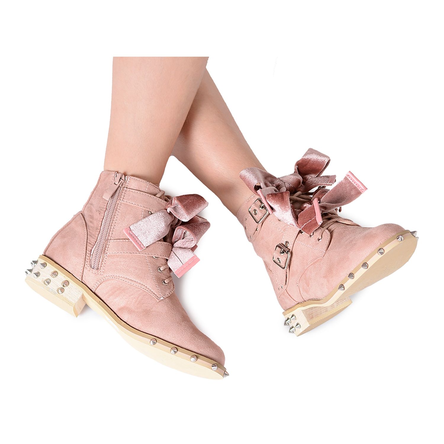 Detalhes: Lu Boo | Botas infantis com tachas e laços LittleCamila Powder Pink rosa