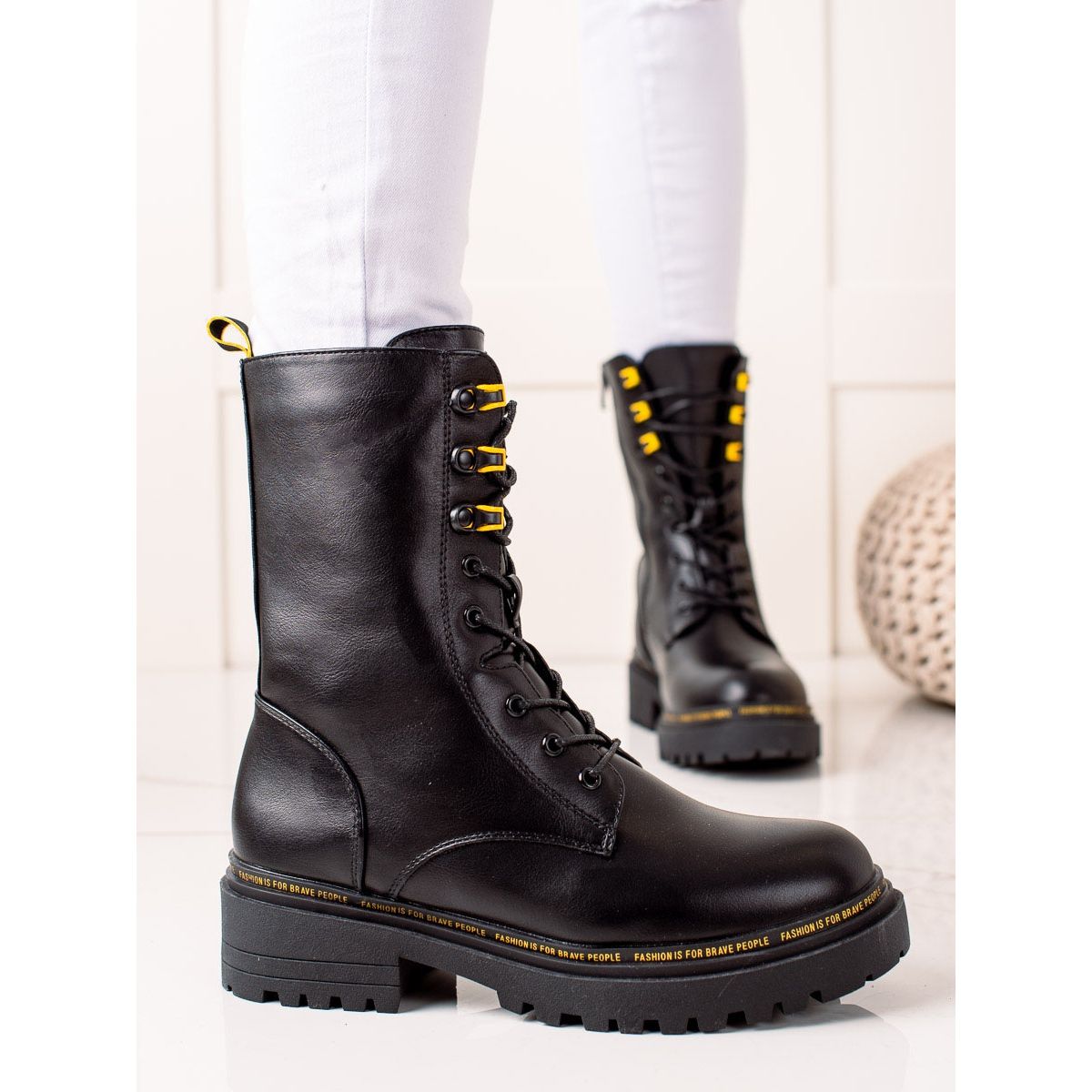 As botas Potocki pretas são equipadas com zíper e laço clássicos, que permitem fácil ajuste ao pé e calçamento confortável. Com salto plano de 5 cm de altura, apoiado adicionalmente por uma plataforma de 3 cm, estes sapatos combinam elegância com conforto de uso.