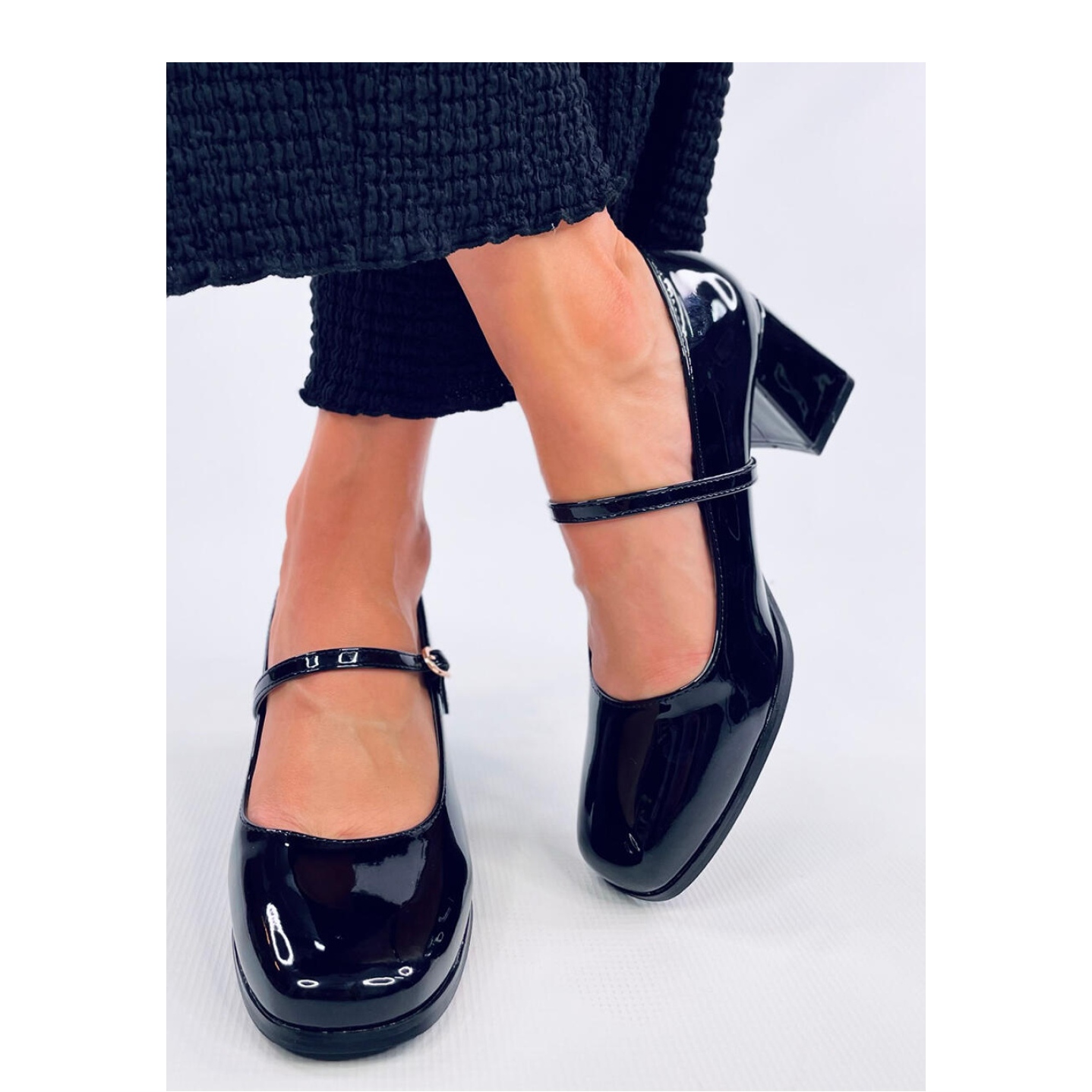 O modelo Maddoi Black é perfeito para muitos estilos diferentes - do cotidiano a roupas mais formais. Graças ao Square Nosc e à fixação prática na fivela, você pode combinar facilmente esses sapatos elegantes ao seu guarda -roupa.
