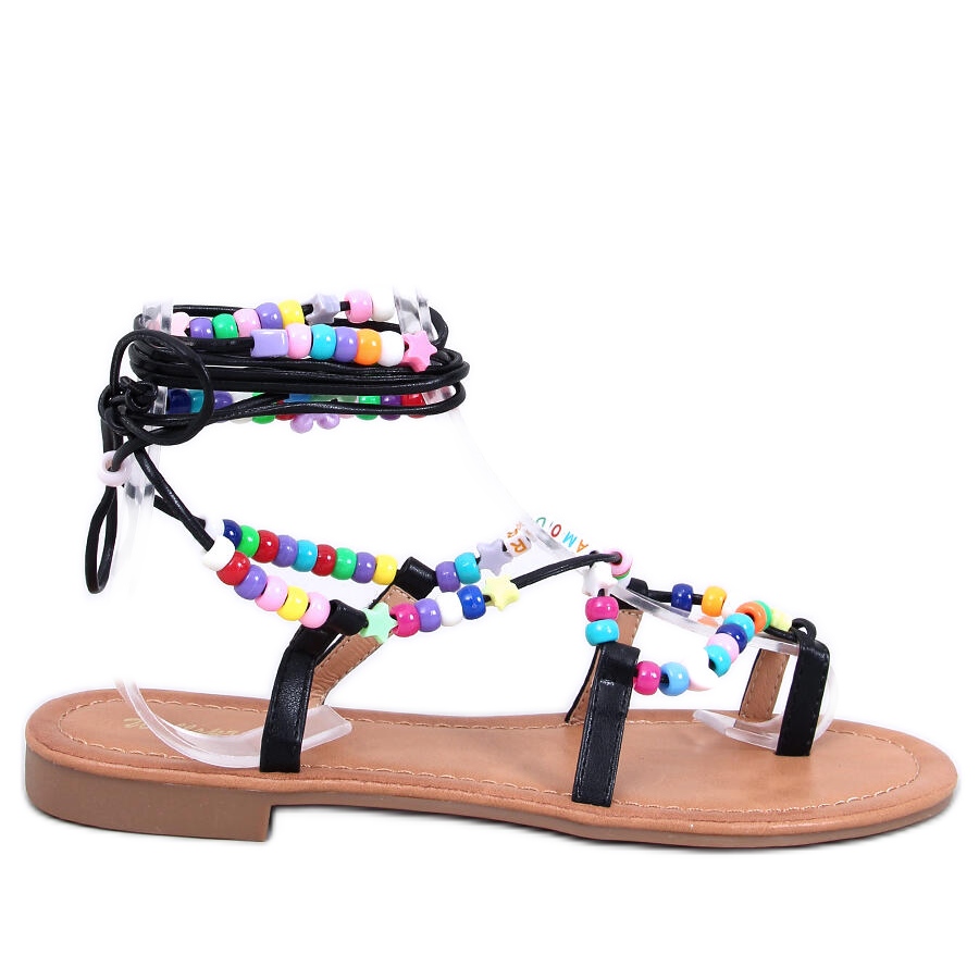 Detalhes: Maios Sandália romana preta com missangas preto
