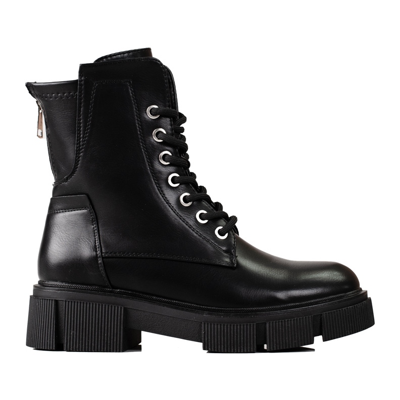 Graças à altura superior acima do tornozelo (16 cm) e largura de 22 cm, estes sapatos adaptam-se perfeitamente à perna, realçando a sua forma. Os trabalhadores Black Shelovet serão um complemento perfeito para muitos estilos, perfeitos tanto para looks casuais quanto mais rock. Escolha estes botins intemporais que combinam design moderno com praticidade!