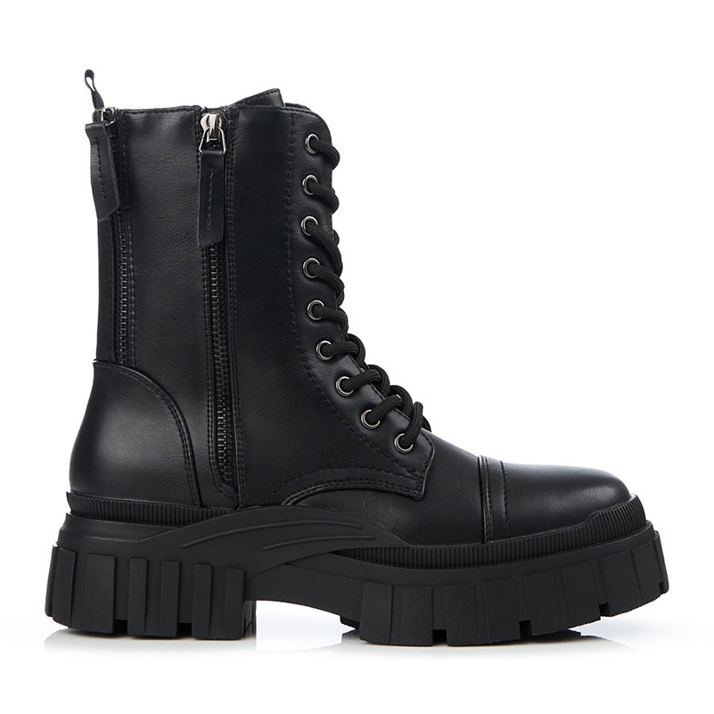 Uma nova proposta da respeitada marca SHELOVET - os trabalhadores pretos com atacadores e zíper decorativo são a quintessência do estilo urbano aliado ao conforto. Estes botins femininos são a escolha perfeita para quem é apaixonada por soluções de moda originais e também valoriza o conforto de uso.