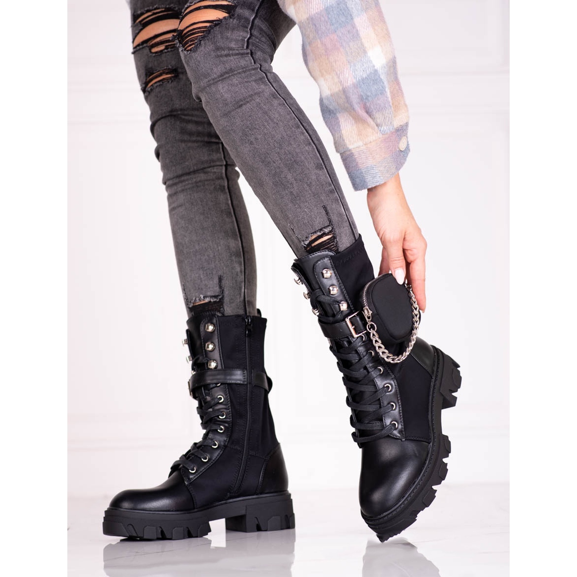 As bolsas femininas pretas com bolsa Shelovet são a escolha perfeita para o outono/inverno para mulheres que valorizam estilo e conforto. Estes botins da moda combinam um look casual com detalhes elegantes que chamam a atenção.