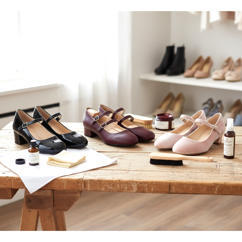 A maioria das Mary Janes é feita de couro natural, couro ecológico ou couro envernizado. Cada um deles requer uma abordagem de cuidado ligeiramente diferente.