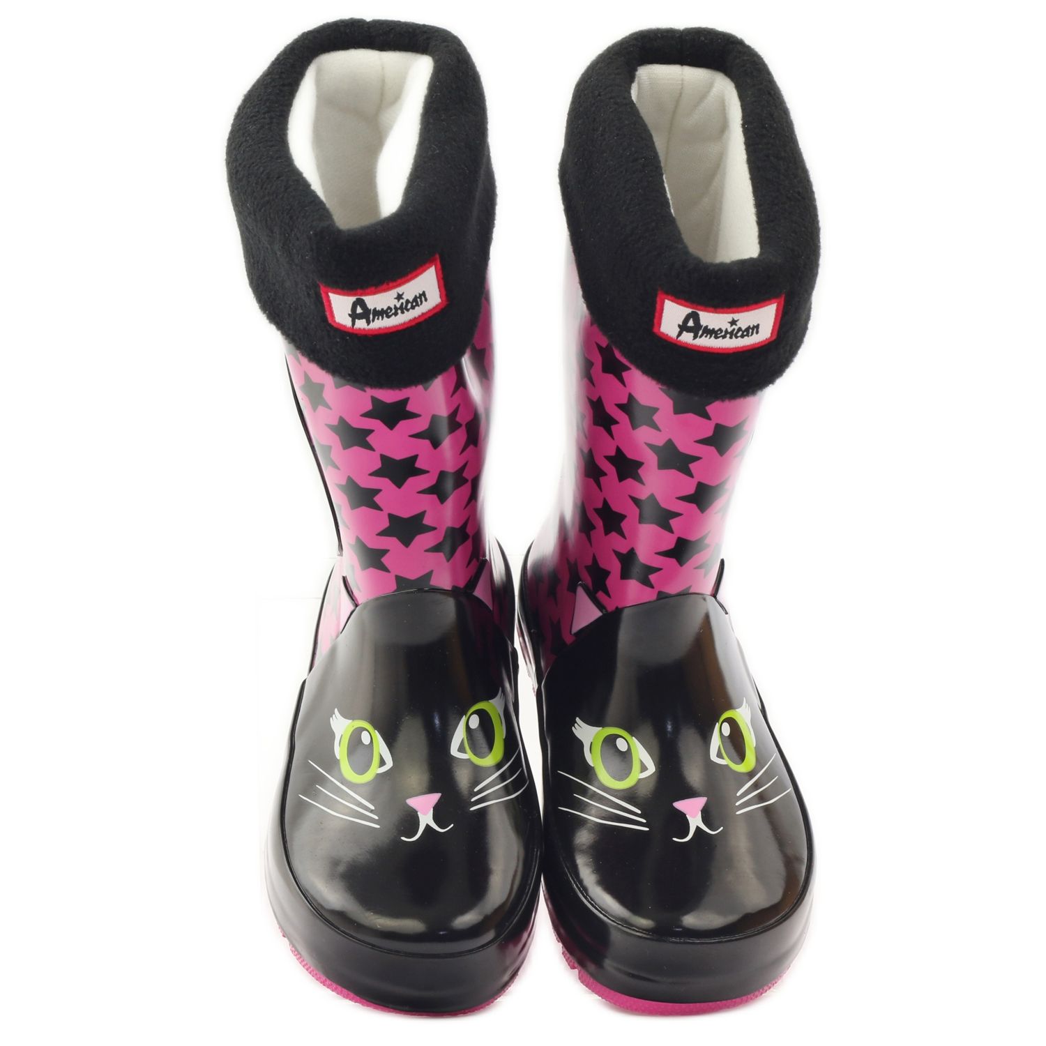 Estas são as galochas que não pode deixar de ter para a sua pequena fashionista! As botas American Club Wellington em um conjunto exclusivo rosa e preto são a solução perfeita para tempo chuvoso e com neve. Na parte frontal do cabedal há um charmoso motivo de gato que certamente atrairá a atenção de todas as meninas.
