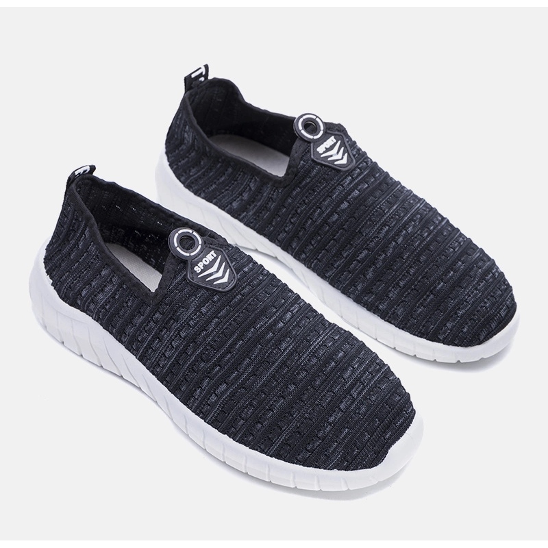 Tênis de meias masculinas negras Original (Modelo #5) - Sapatos leves, confortáveis e universais ideais para um dia ativo. Uma parte superior flexível e arejada na forma de uma "meia" permite a colocação rápida, e a ligação adicional permite que você se encaixe perfeitamente no pé. A sola branca de borracha fornece adesão e amortecimento, e a inserção de tecido aumenta o conforto do uso.