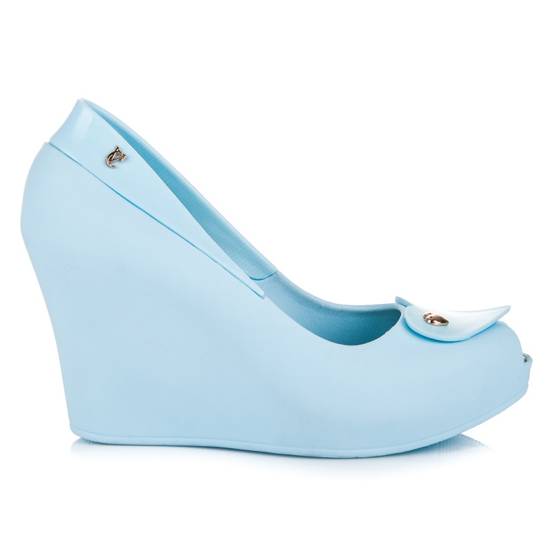 Detalhes: Vices Meliski em uma cunha de dedo do pé aberto azul