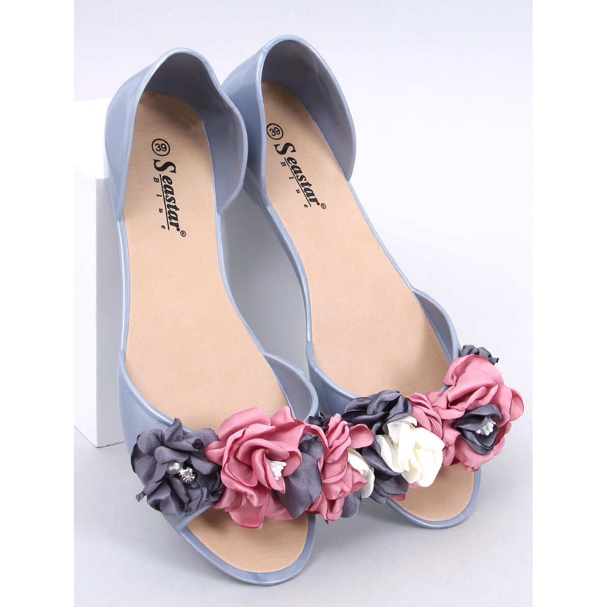 Apresentamos o Meliski com flores cinzas Carmil - os companheiros perfeitos dos dias de verão! Essas elegantes bailarinas femininas, feitas de borracha brilhante e plástica, combinam estilo e conforto. O nariz aberto faz as pernas respirarem, o que as torna uma ótima escolha em dias quentes.
