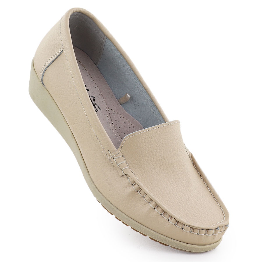 Detalhes: Mocas de couro feminino na elevação bege sabatina jhy03