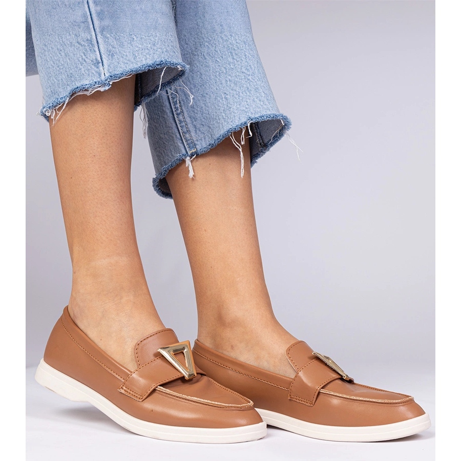 Os mocassins das mulheres marrons com uma decoração elegante é a escolha perfeita para todas as mulheres que procuram harmonia entre estilo e conforto. Feito de couro ecológico de alta qualidade, eles combinam durabilidade e facilidade de atendimento. Sua bela cor de camelo se encaixa perfeitamente nas últimas tendências e, ao mesmo tempo, é um complemento universal para muitos estilos.