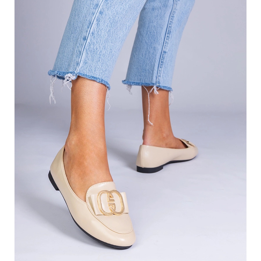 Inna marka Mocas femininas bege com uma decoração de ouro
