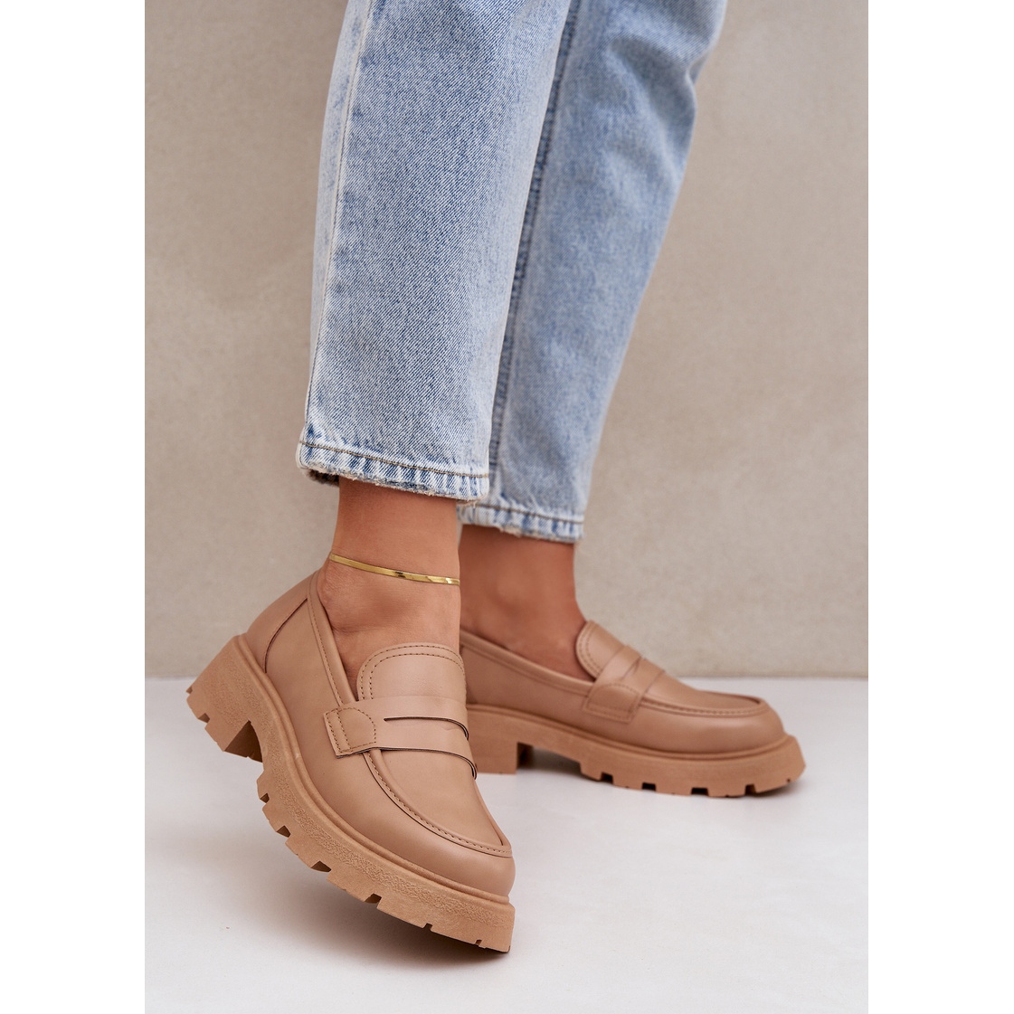 Graças ao dedo redondo, os mocassins parecem sutis e elegantes. Também vale a pena prestar atenção à sua cor bege atemporal, que combina perfeitamente com muitos estilos e cores. Eles são ideais para várias ocasiões, desde caminhadas pela cidade, através de reuniões com amigos e eventos mais oficiais.