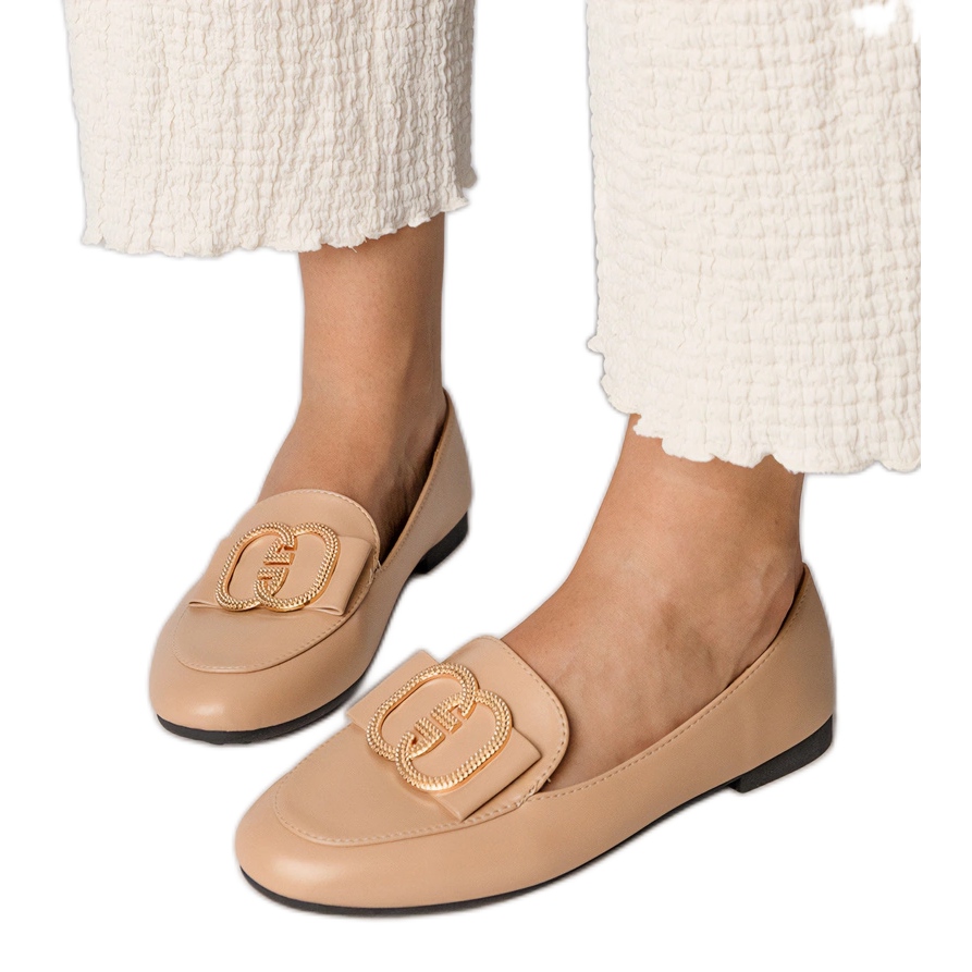 Inna marka Mocas femininas cremosas com uma decoração de ouro cremoso
