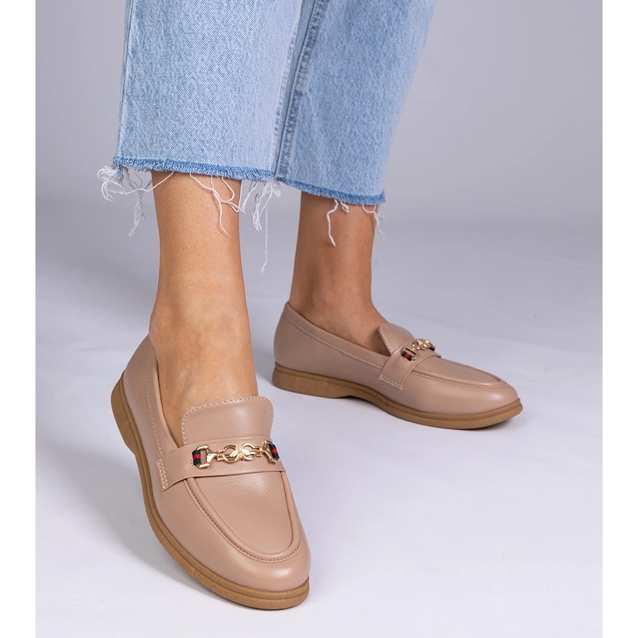 Descubra sua nova paixão por elegância e conforto com mocassins marrons com uma decoração de ouro! Esses sapatos clássicos cáqui são a escolha perfeita para todas as mulheres que querem combinar estilo com conforto nas estilizações cotidianas.