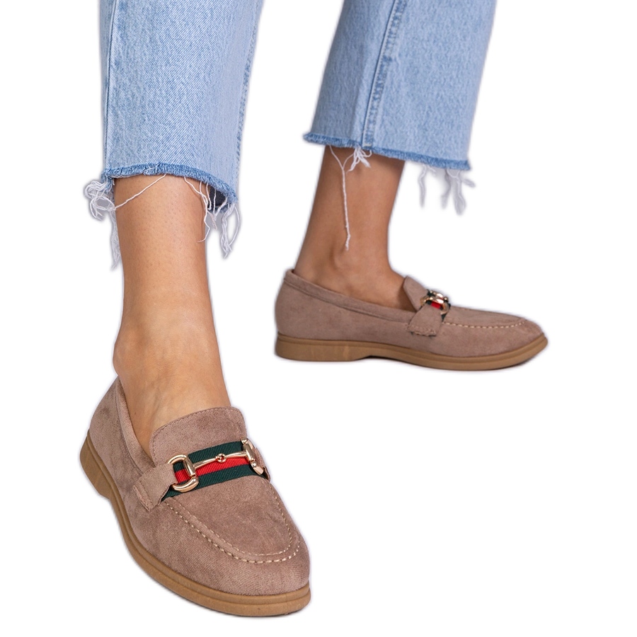 Inna marka Mocas marrons de Ekozamsz com uma decoração de ouro castanho