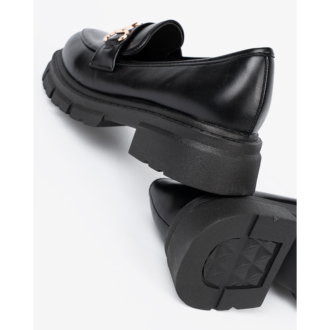 Detalhes: Shelvt Mocas pretos clássicos com um grampo de metal