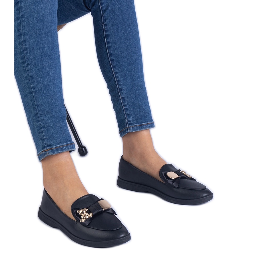 Descubra a elegância e a conveniência escolhendo mocassins pretos decorados com um laço e um ursinho de pelúcia dourado. Esses sapatos da moda são uma combinação perfeita de clássicos com um design moderno, que certamente atrairá a atenção de todos os fashionistas.