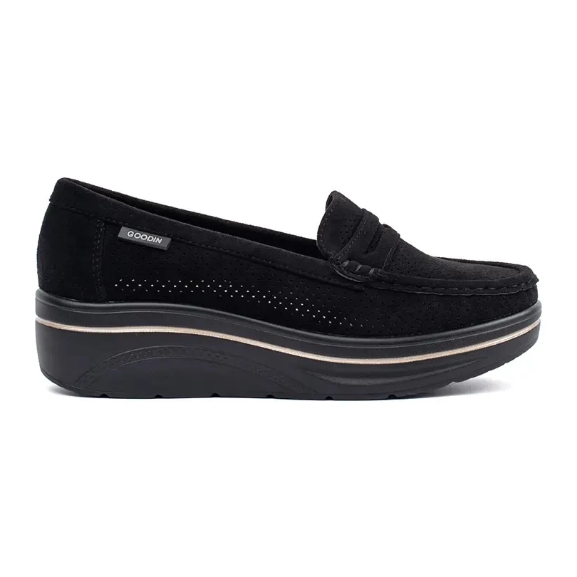 Descubra uma nova dimensão de elegância e conforto com mocassins pretos em uma sola grossa de Goodin! Esses sapatos femininos elegantes combinam um visual clássico com um sotaque moderno, o que os torna uma escolha ideal para todas as ocasiões - de caminhadas diárias a saídas formais.