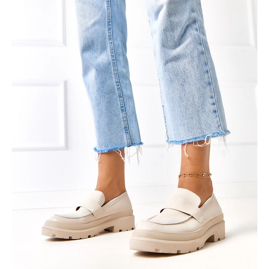 Graças à cor bege, esses mocassins se misturam perfeitamente com várias estilizações - de casual a um pouco mais elegante. A sola de plástico garante estabilidade e adesão, o que os torna a escolha perfeita para os dias de verão.