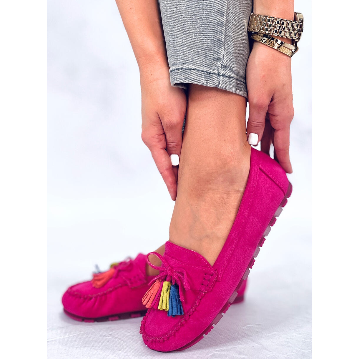 Detalhes: BM Mocassim com franjas fúcsia Tamla rosa