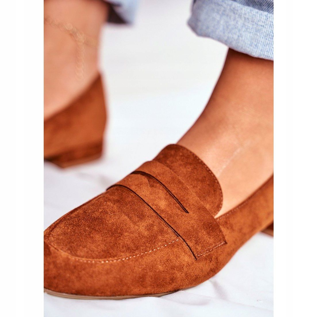 Os mocassins femininos de camurça Sergio Leone MK734 Camel Nebbi na cor marrom são a escolha perfeita para toda mulher que deseja se destacar em estilos originais. Estes sapatos elegantes, inspirados no calçado masculino, serão perfeitos como um complemento único para vários looks.