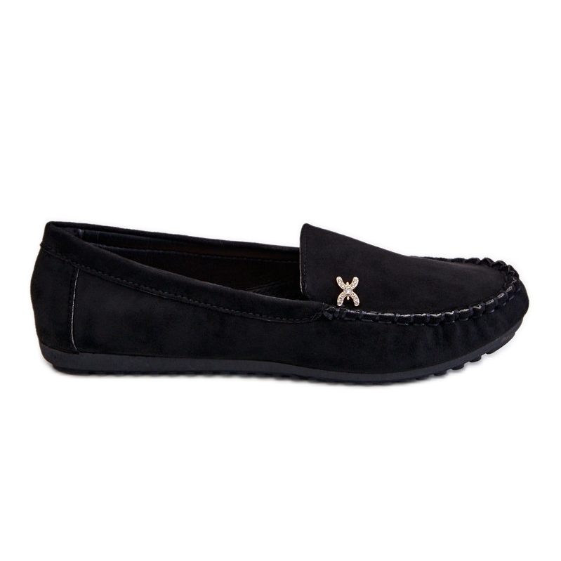 Detalhes: Mocassim feminino de camurça com enfeite Leah preto