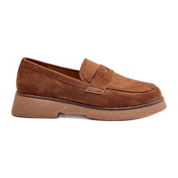 Mocassins clássicos femininos de camurça ecológica, marrom Belania