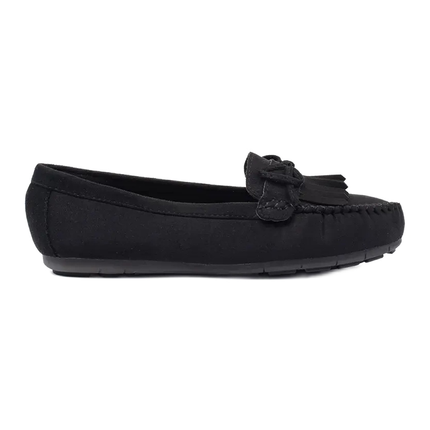Os mocassins elegantes e confortáveis da Fama são um modelo atemporal que combina um estilo casual com uma pitada de estilo. Feito de camurça ecológica em uma cor preta clássica, decorada com um arco sutil na frente, eles funcionarão diariamente e para ocasiões mais solenes.