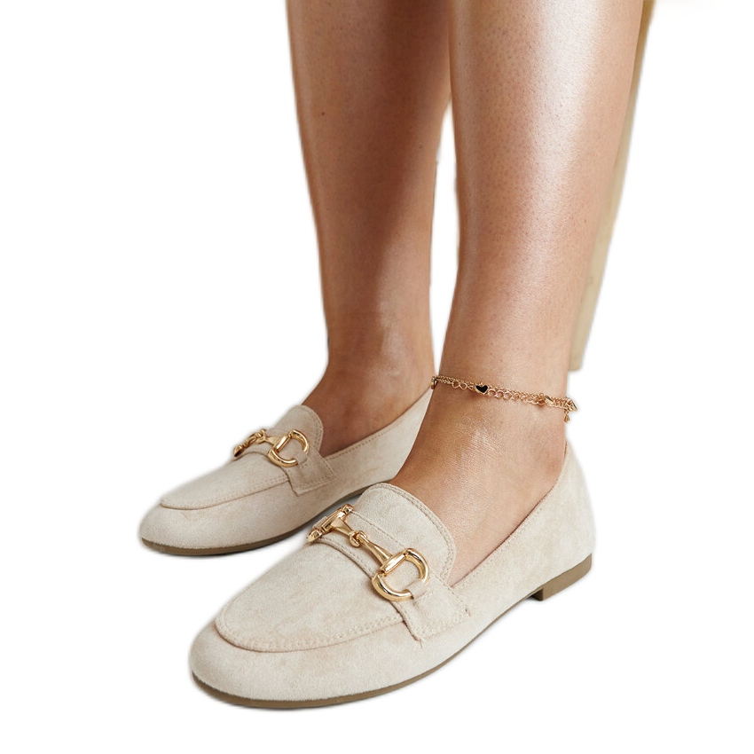 Os mocassins bege com a fivela de Erminia são uma ótima opção para os dias de verão para mulheres que valorizam o estilo e o conforto. Seu design elegante com o dedo do pé de amêndoa significa que eles se encaixam nas roupas casuais e mais formais. Feitos de couro de camurça ecológica de alta qualidade, esses sapatos leves são confortáveis de usar e perfeitos para longas caminhadas.