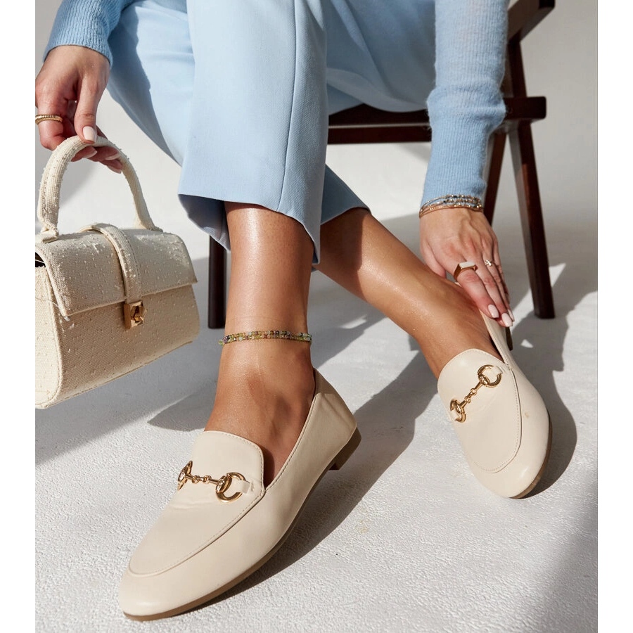 Escolha mocassins bege com a fivela de Erminia e aproveite o estilo da moda e o conforto de usar todo dia de verão!