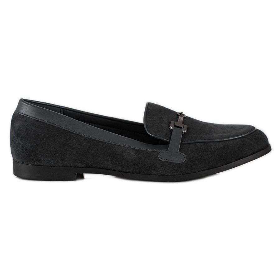 Os mocassins foram desenhados para ocasiões de primavera e verão, e sua cor preta universal faz com que combinem perfeitamente com vários estilos. Graças à inserção de couro, eles não são apenas elegantes, mas também confortáveis. Têm uma largura G, o que faz com que se ajustem perfeitamente ao pé.