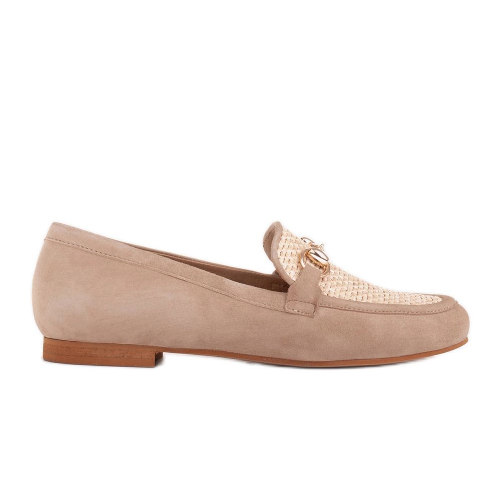 Detalhes: Marco Shoes Mocassins com ornamentos dourados bege