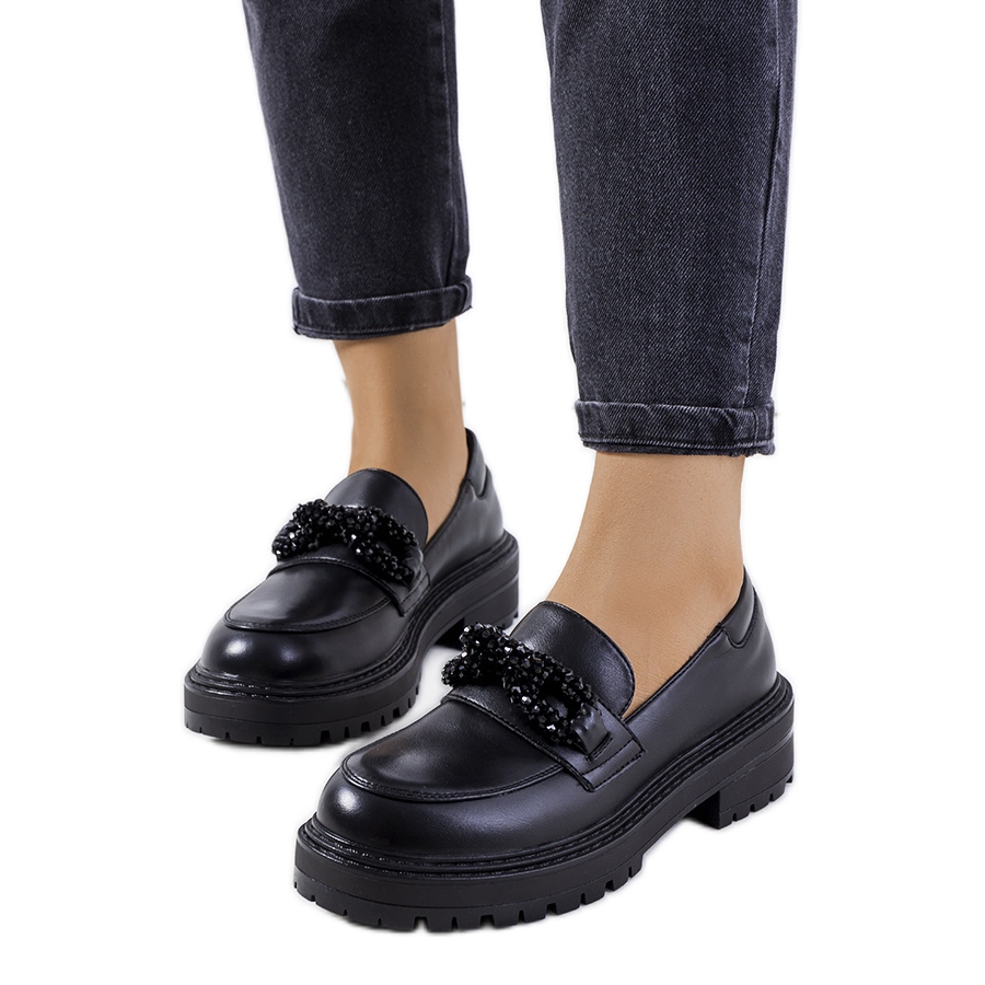 Os mocassins de Curio são essenciais para todos os guarda-roupas-uma combinação de um corte atemporal com detalhes da moda. A sola do trator acrescenta caráter e garante estabilidade, e a grande e brilhante decoração chama a atenção. A inserção de couro natural garante conforto ao longo do dia, enquanto o topo é feito de couro ecológico, fácil de se cuidar. Modelo perfeito para a temporada de verão - elegante, confortável e universal.