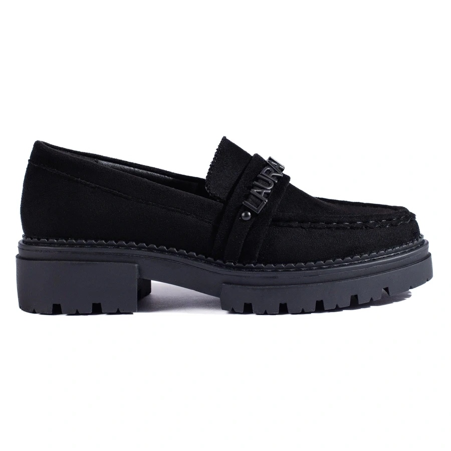 Sofi elegantes e confortáveis em camurça ecológica clássica - ideal para estilizações cotidianas e mais formais. A combinação de corte da moda com soluções práticas garante conforto ao longo do dia.