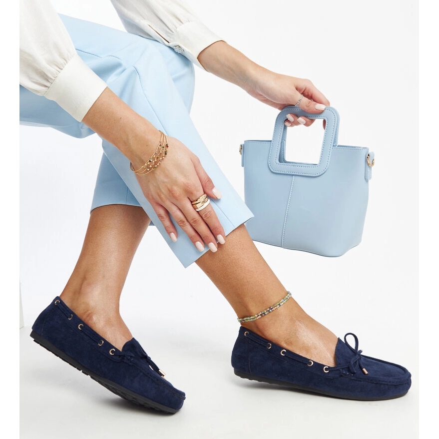 Detalhes: Mocassins de camurça azul marinho da Aneesa