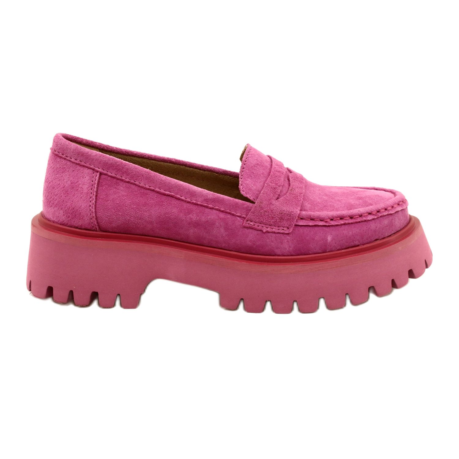 Mocas clássicos em uma edição moderna - feita de couro natural de camurça de alta qualidade em fúcsia intensa. Uma sola ligeiramente elevada e um salto de 4,5 cm de altura modelam sutilmente a silhueta, adicionando o personagem aos sapatos, e a inserção de couro garante o conforto de usar o dia todo. Perfeito para mulheres que procuram elegância com uma pitada de expressividade.