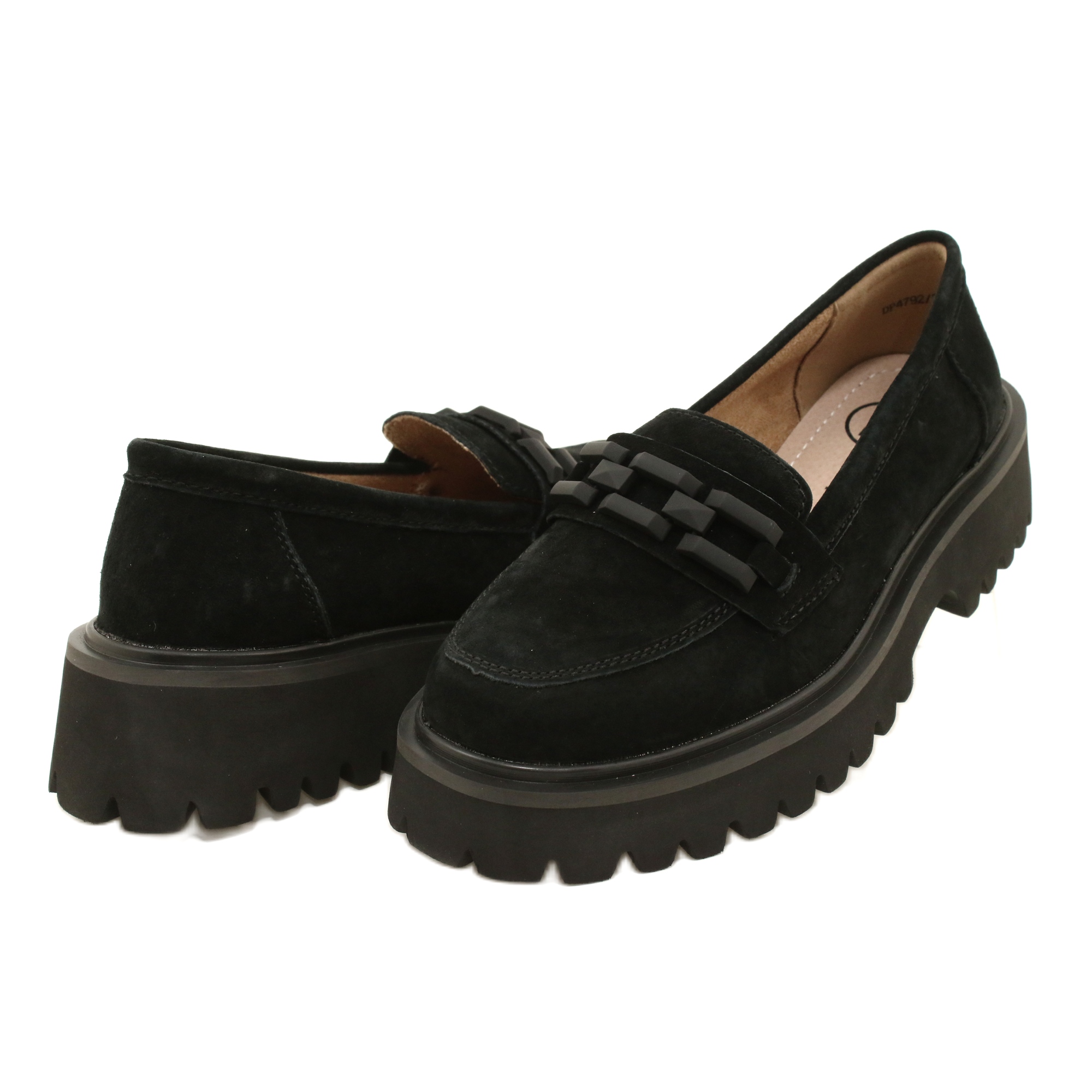 FILIPPO DP4792/23 BK SU SUEDE Mocassins - Elegância em uma edição conveniente. Aguas clássicas feitas de couro de camurça natural de alta qualidade em uma cor preta e atemporal. A sola elevada e o calcanhar (4,5 cm) diminuíram a figura, e a corrente 3D decorativa adiciona caráter aos sapatos e um acabamento luxuoso. Perfeito todos os dias e para estilizações mais elegantes.