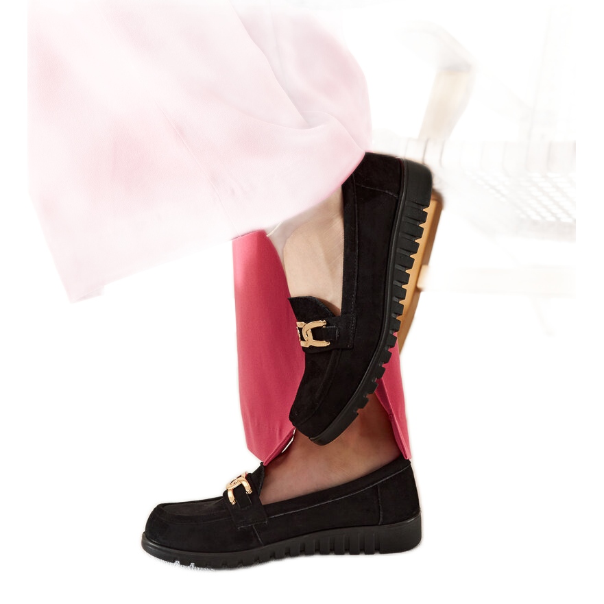 Detalhes: Mocassins de camurça preta com fivela Sardis preto