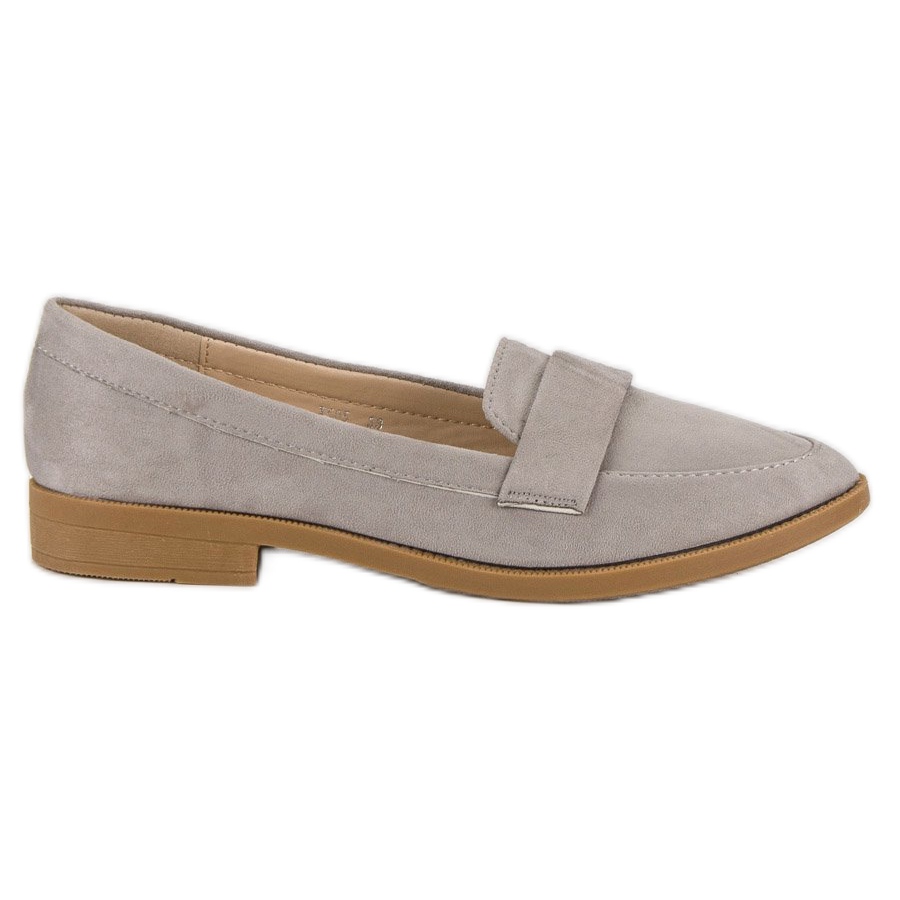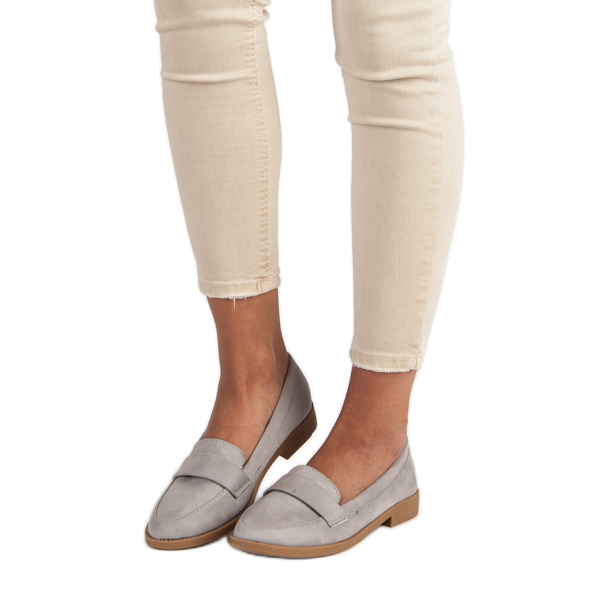 Adicione um toque de elegância ao seu guarda-roupa com mocassins de camurça da Small Swan. Estes elegantes sapatos slip-on são feitos de camurça ecológica de alta qualidade em um moderno tom de cinza, que se adapta perfeitamente às últimas tendências. Os detalhes prateados combinados com a sola marrom acrescentam charme visual, e o salto de 3 cm de altura garante conforto durante todo o dia.