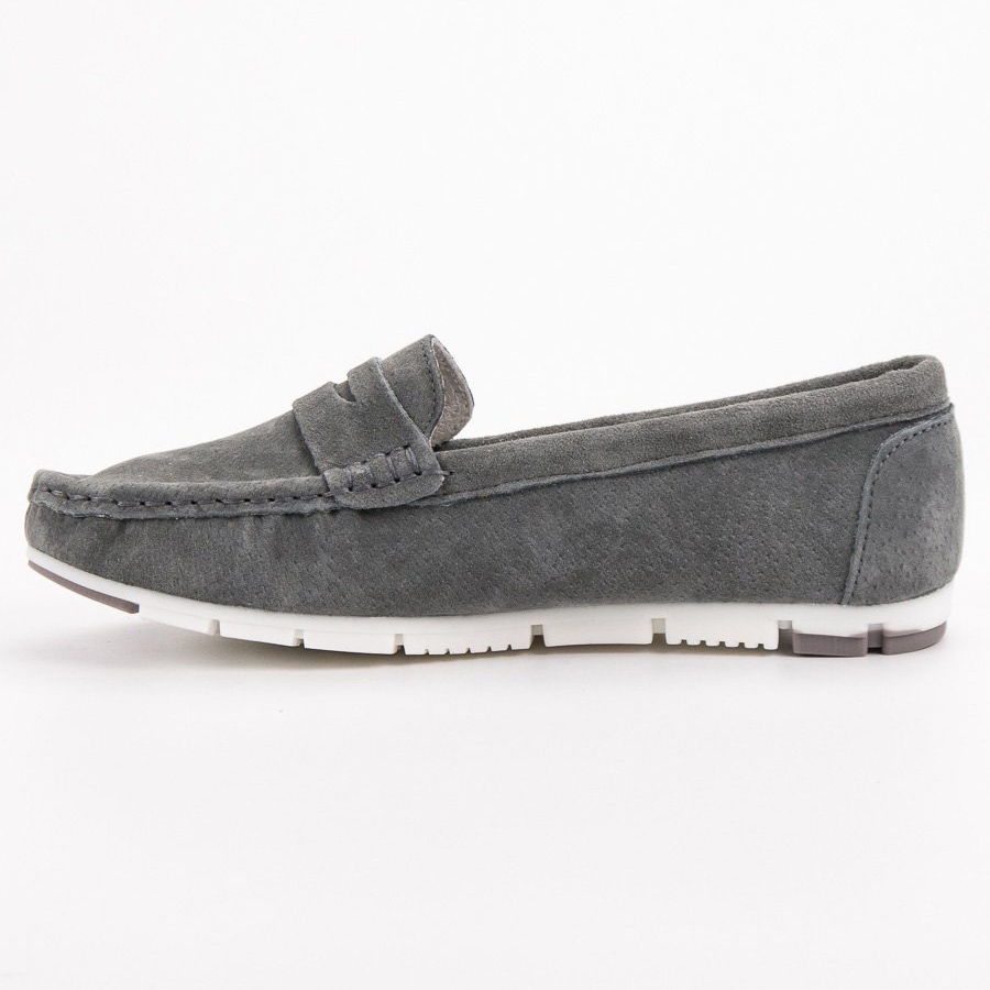 A sola branca é um destaque fashion que diferencia este modelo dos demais, agregando frescor e leveza a qualquer estilo. Os mocassins são perfeitos para viagens de verão, compras ou para ir à escola. Graças à cor cinza universal, combinam com muitos estilos diferentes - tanto urbanos como desportivos.
