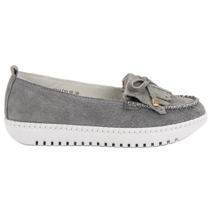 Os mocassins de couro da moda Filippo na cor cinza são a essência do conforto e do estilo, perfeitos para toda mulher moderna. Estes sapatos elegantes, confeccionados em couro natural, adaptam-se perfeitamente ao formato dos pés, o que garante conforto mesmo quando usados por muito tempo. Graças ao fecho deslizante, colocá-los e retirá-los é extremamente simples e rápido.